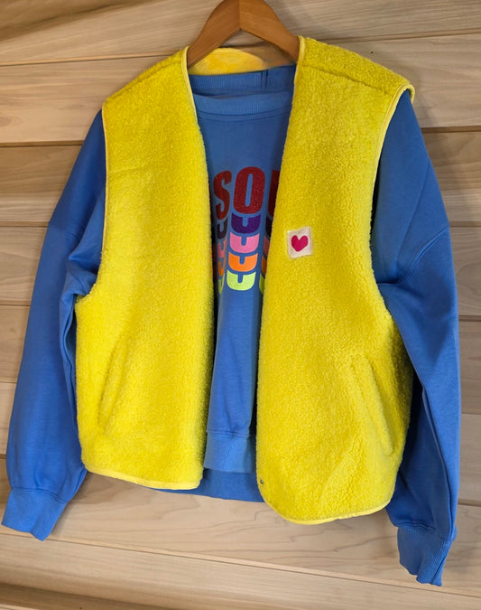 Bright Yellow V Neck Teddy Fleece lined, Sleeveless Gilet