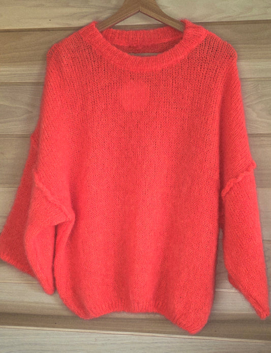 Neon Orange/Coral Mohair Mix Jumper.