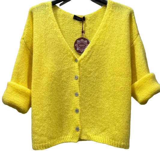 Kid Mohair & wool mix Neon Yellow V Neck Cardigan