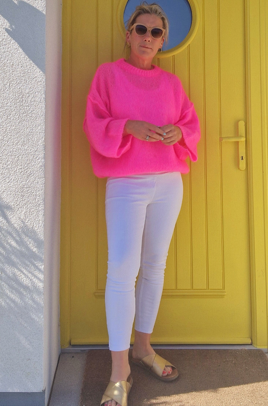 Neon Pink Mohair Jumper. Long sleeve jumper.
