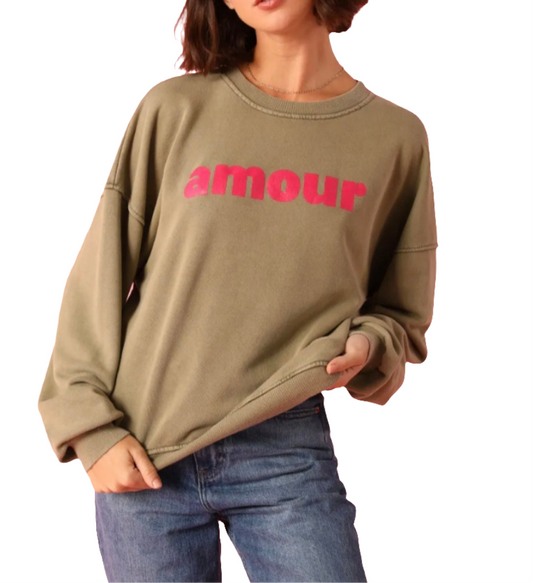 Khaki and Raspberry Pink Amour Sweatshirt.