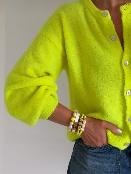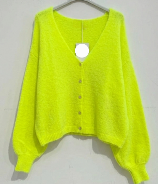 Neon Yellow Superfine Alpaca & Wool Mix V Neck Cardigan ( restock soon)