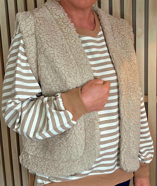 Teddy Fleece Gilet in Oatmeal Beige