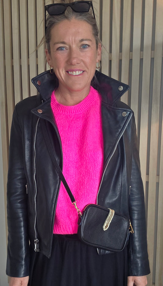 Neon Pink Alpaca Mix Short Sleeve Jumper