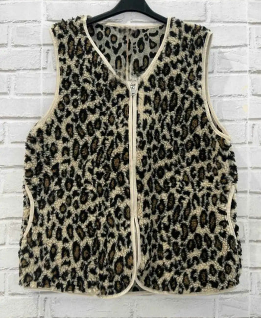 Animal Print Long Gilet with zip & pockets