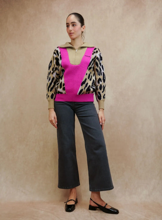 Leopard & Neon Quarter-Zip "Amour" Knit