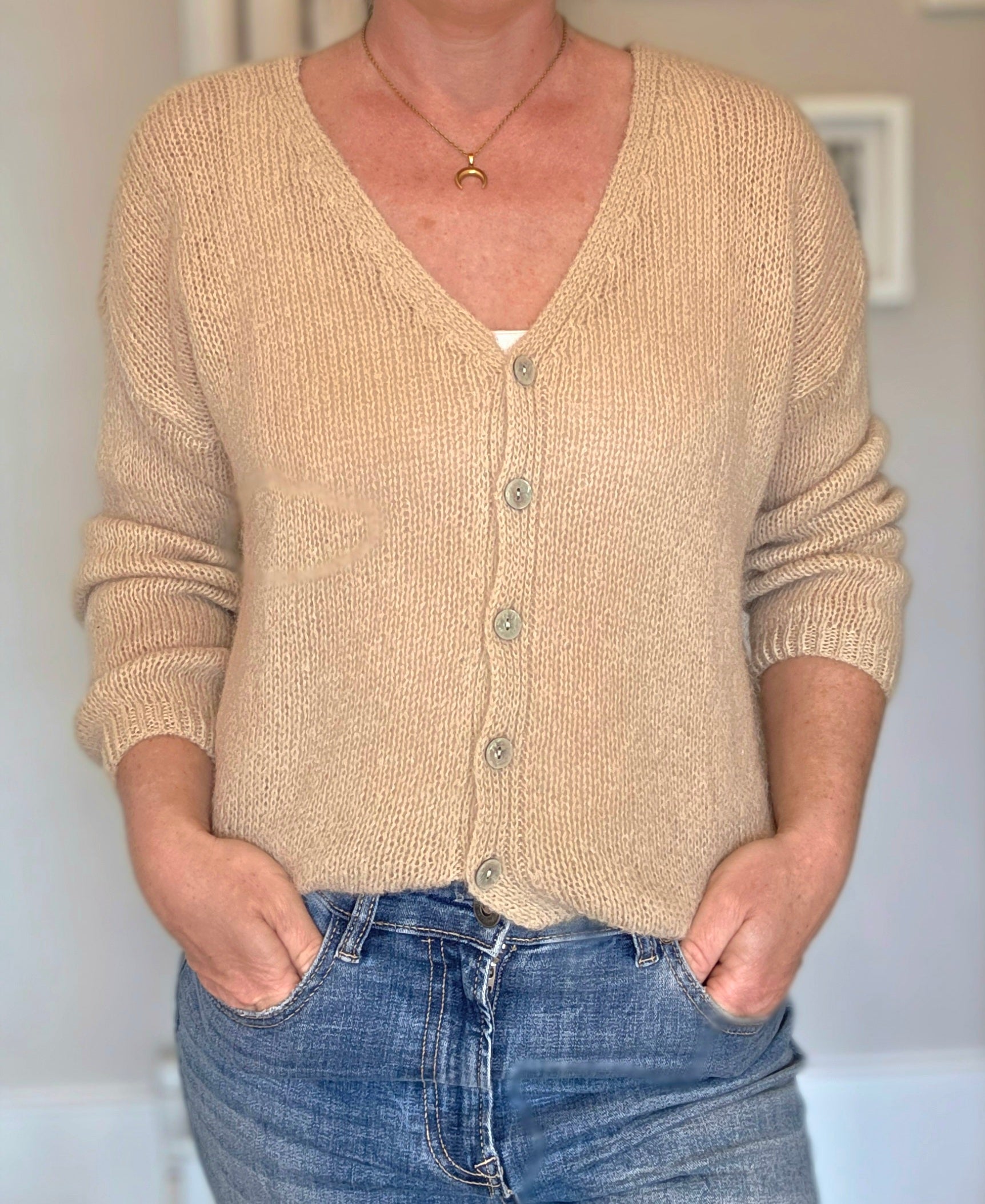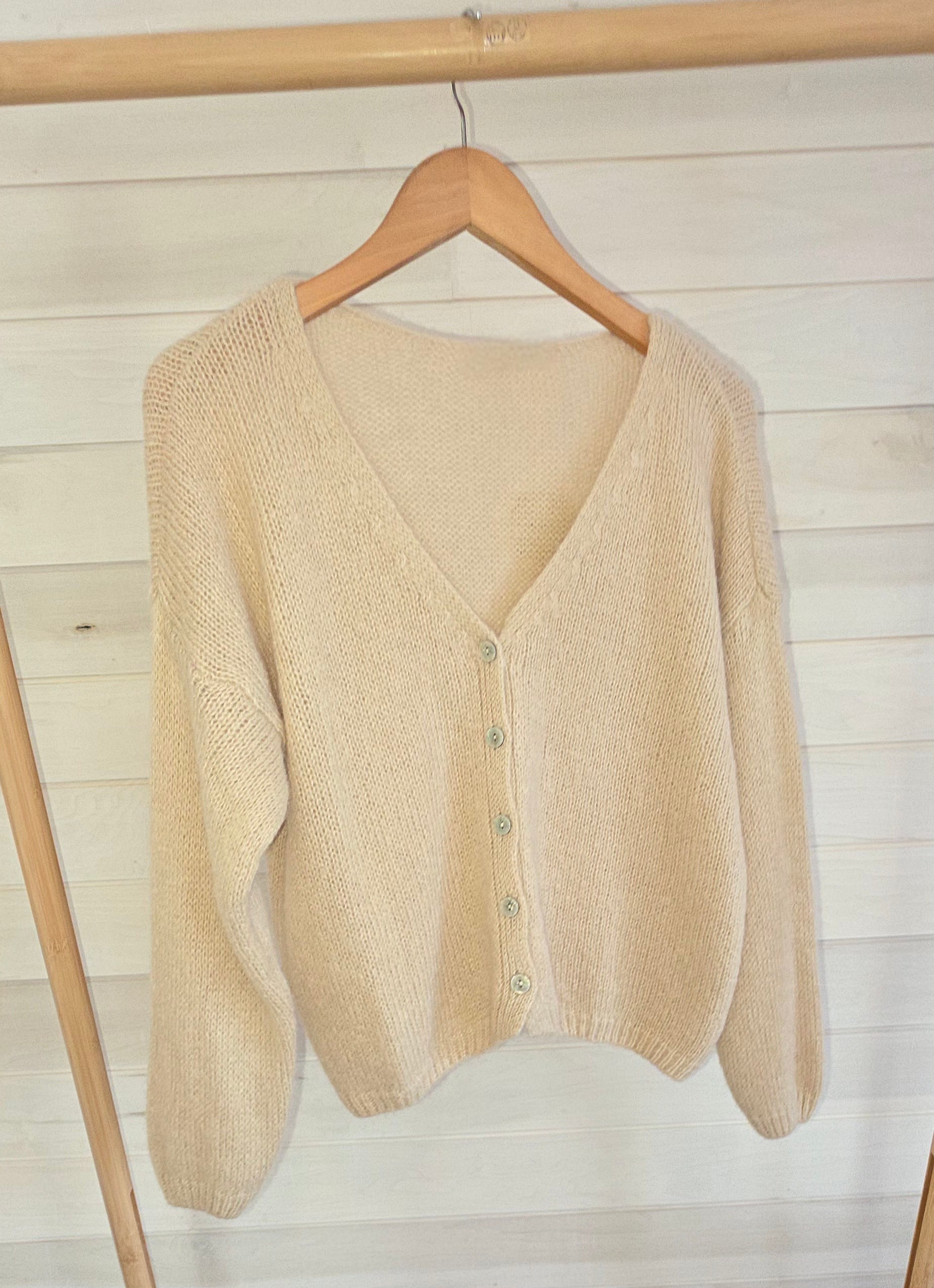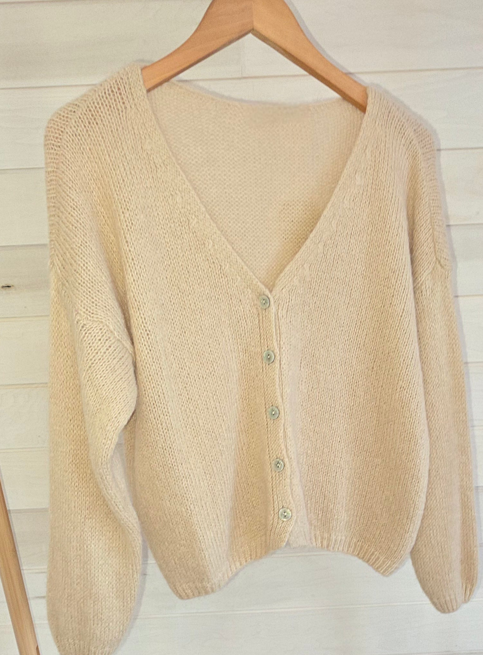 Oatmeal beige Mohair Mix. V Neck Cardigan